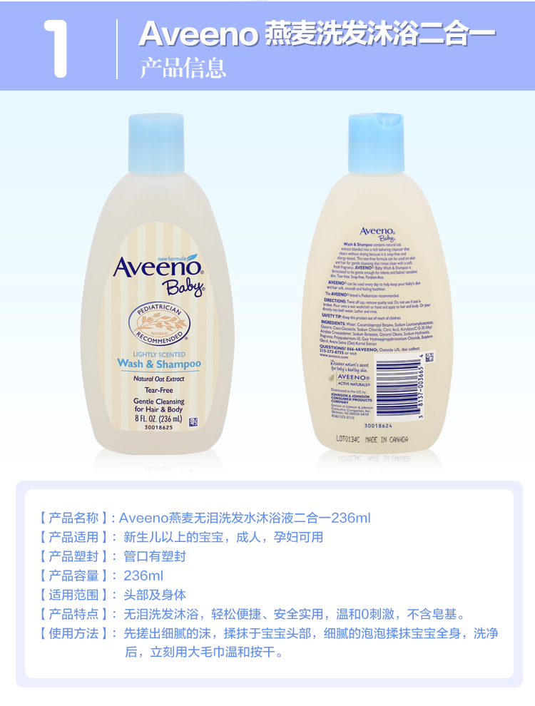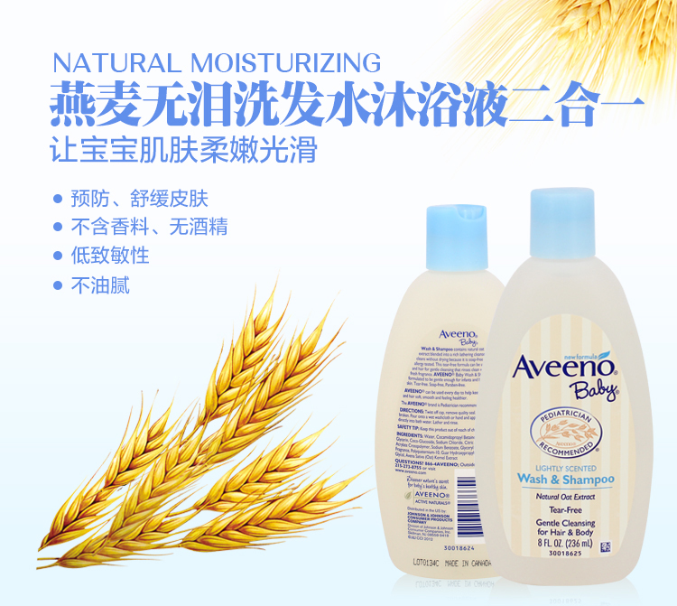 【加拿大直邮】艾维诺Aveeno baby婴幼儿燕麦洗发沐浴二合一 236ml