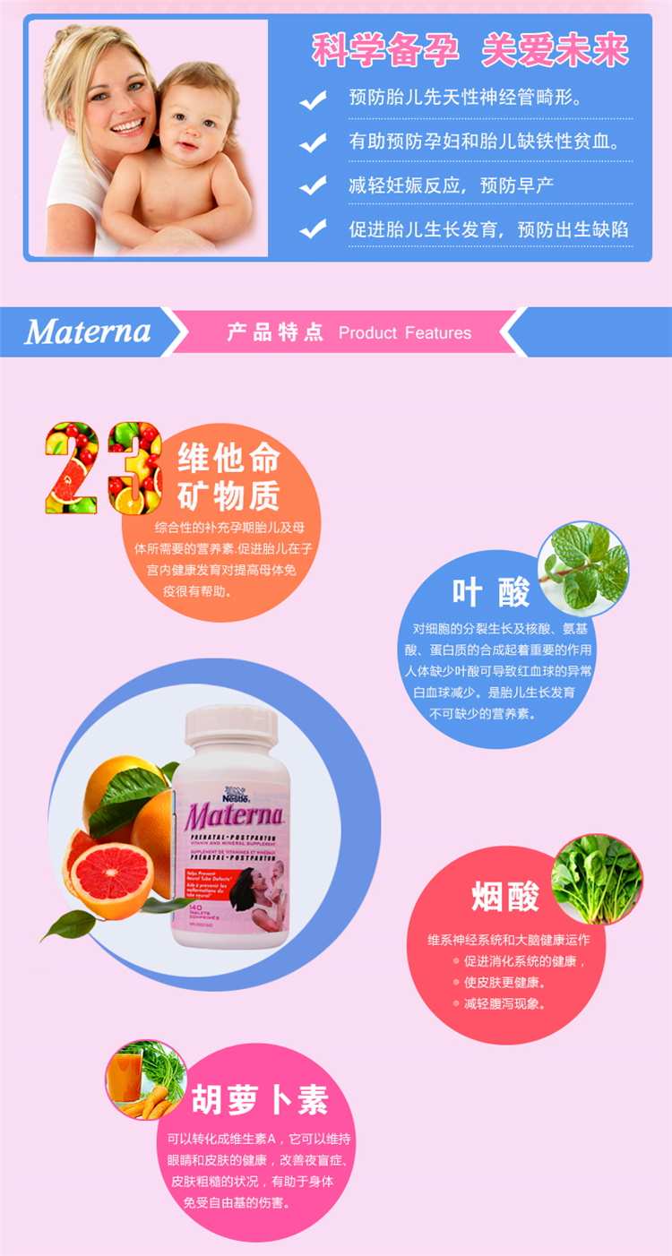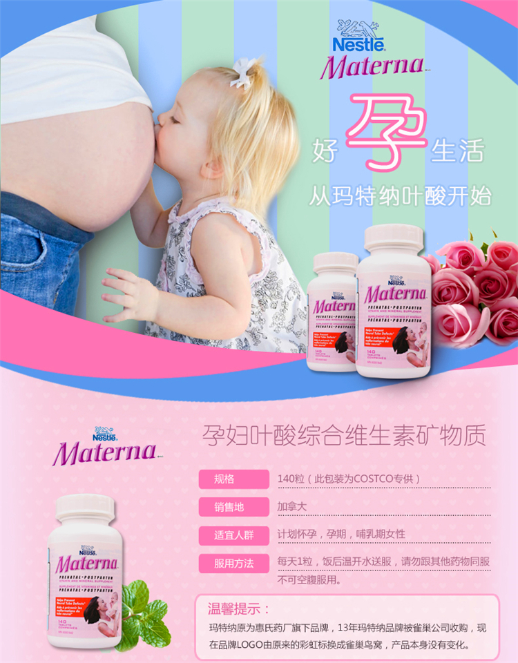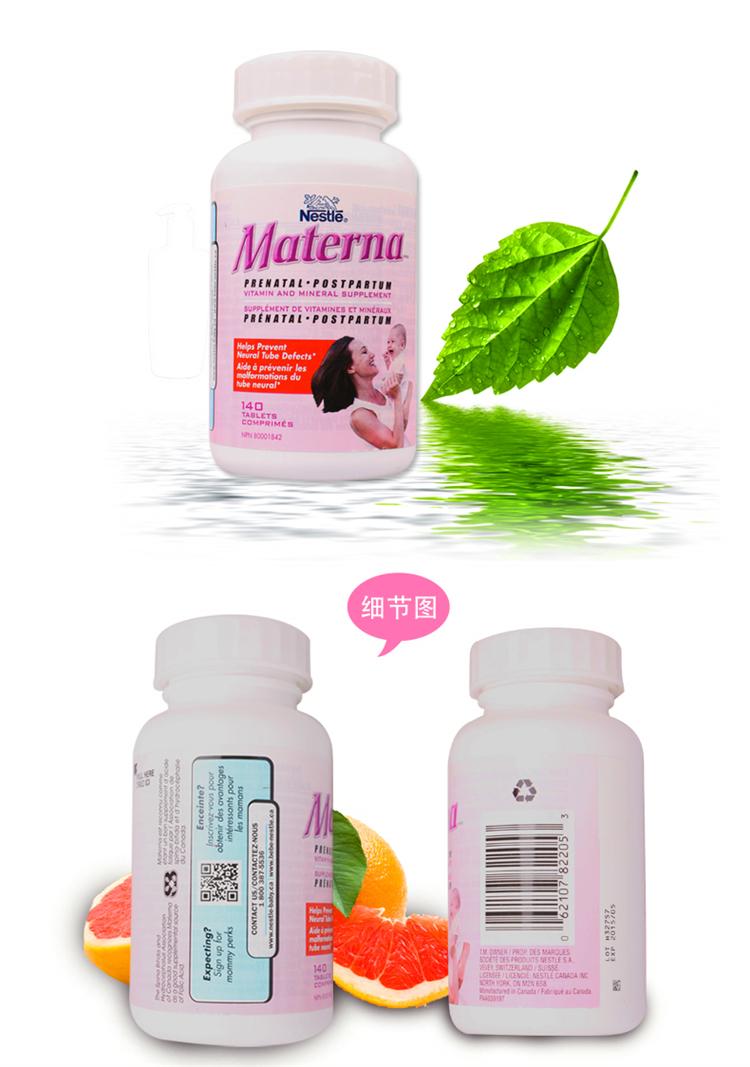 商品名称:【全球购】【加拿大直邮】玛特纳materna孕妇综合维生素矿物质含叶酸 140粒