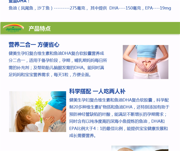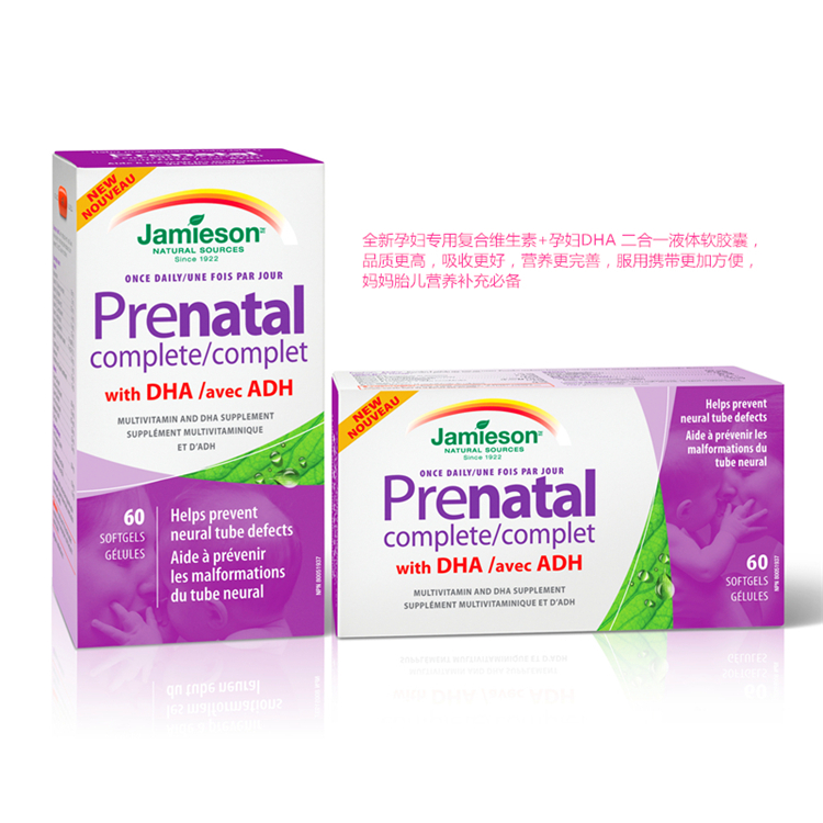 商品名称:【全球购】【加拿大直邮】健美生孕妇综合维生素+鱼油DHA复合软胶囊60粒 2个月量 一盒装