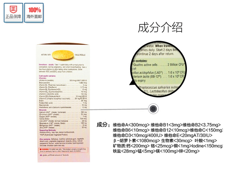 商品名称:【全球购】【加拿大直邮】Jamieson/健美生 孕妇综合维生素100粒 含叶酸100粒