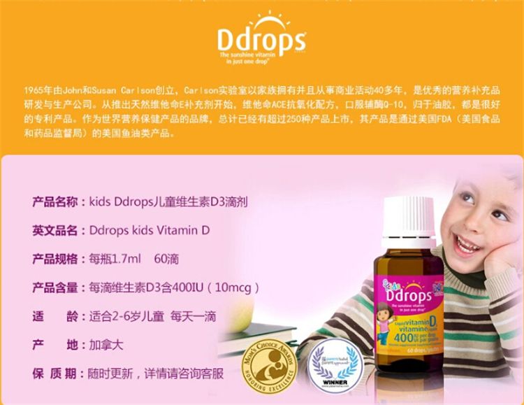 商品名称:【全球购】【加拿大直邮】 D Drop天然儿童维生素D滴剂(朵拉)儿童补钙(加拿大版)