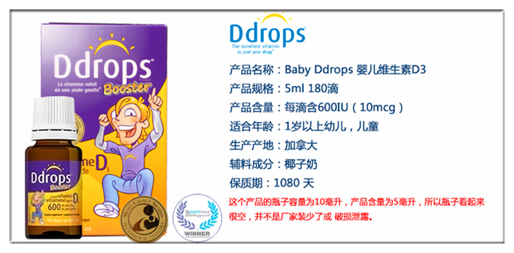 商品名称:【加拿大直邮包税】Ddrops Booster 幼儿儿童维生素D3 5ml 一盒装