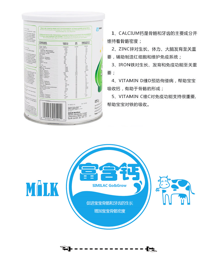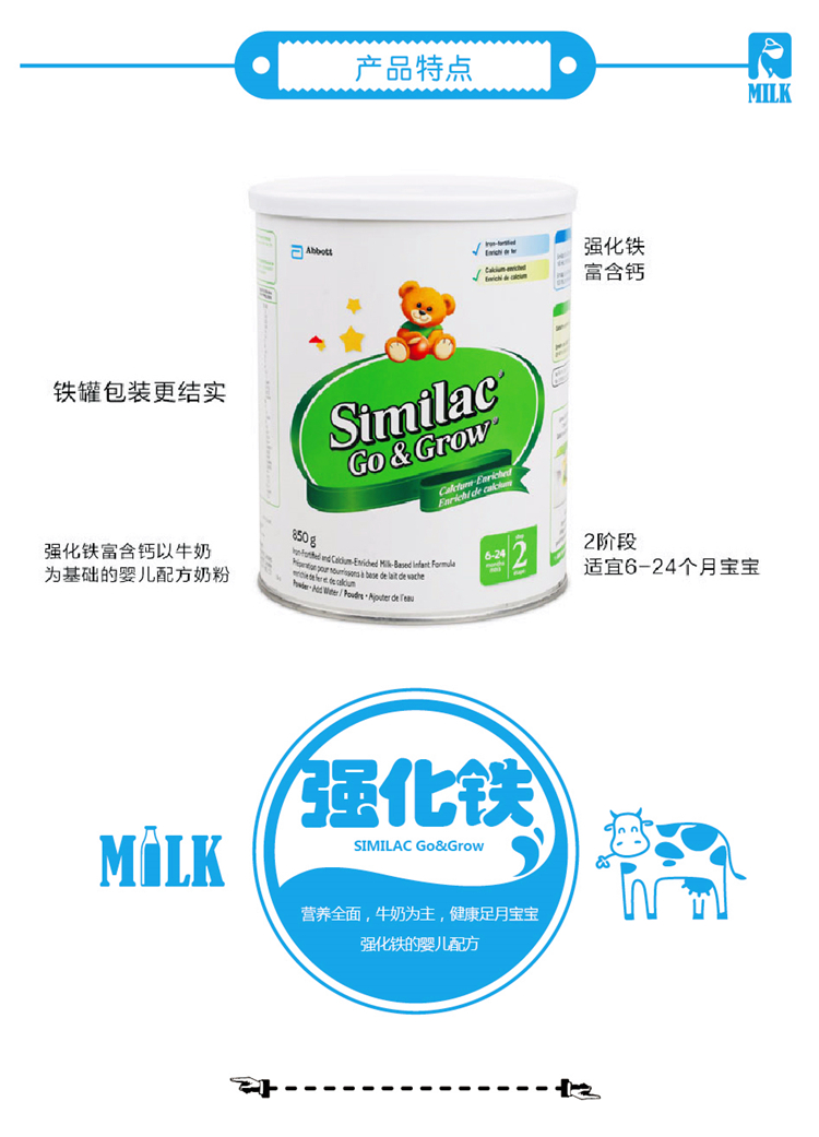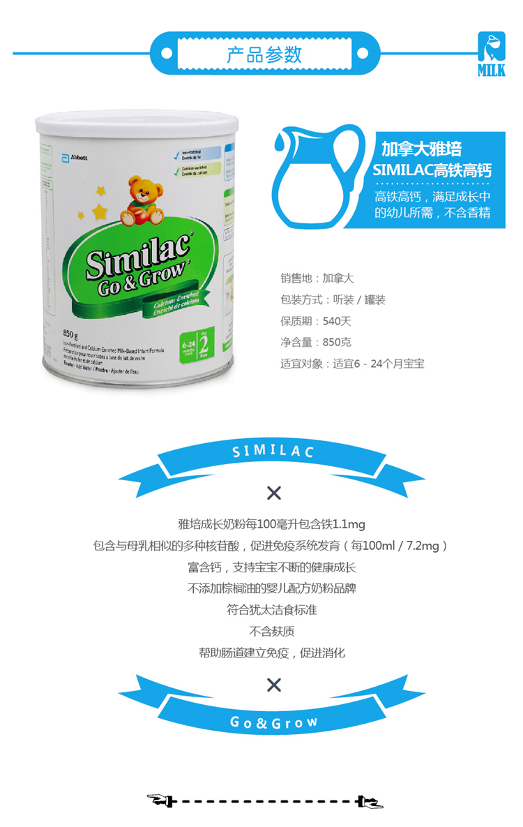 商品名称:【全球购】【加拿大直邮】雅培2段奶粉 Similac Go&Grow二段850g 二段2罐装