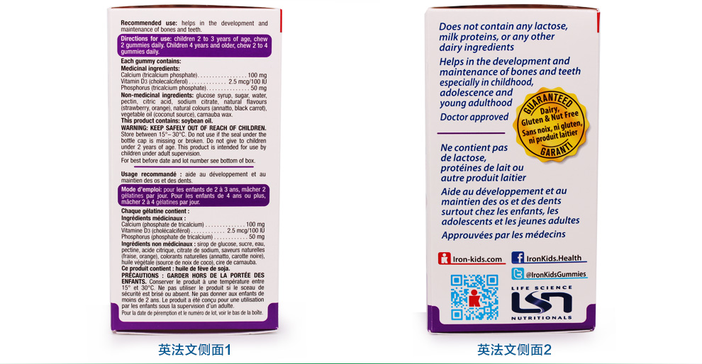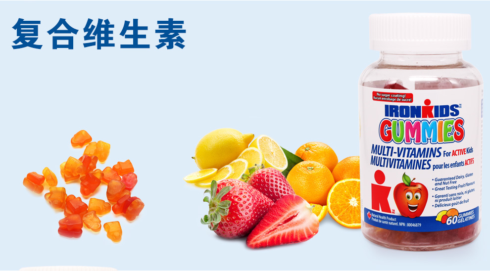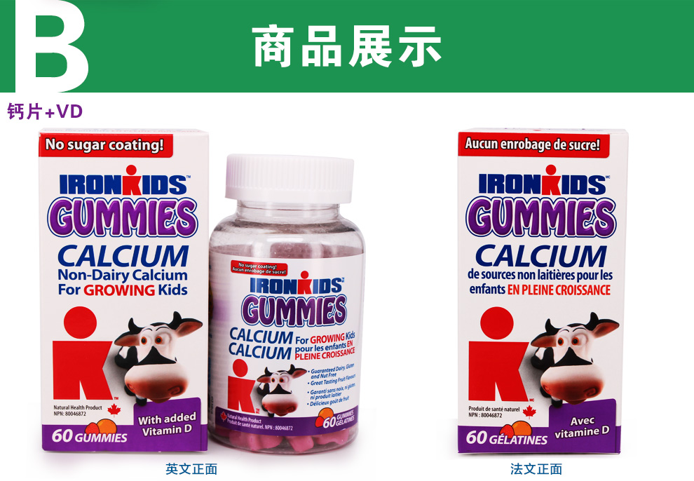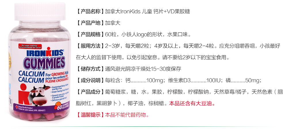 商品名称:【全球购】海外直邮加拿大原装Ironkids小铁人 维生素D果胶软糖 60粒