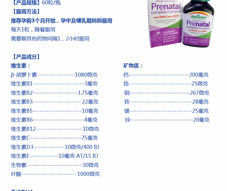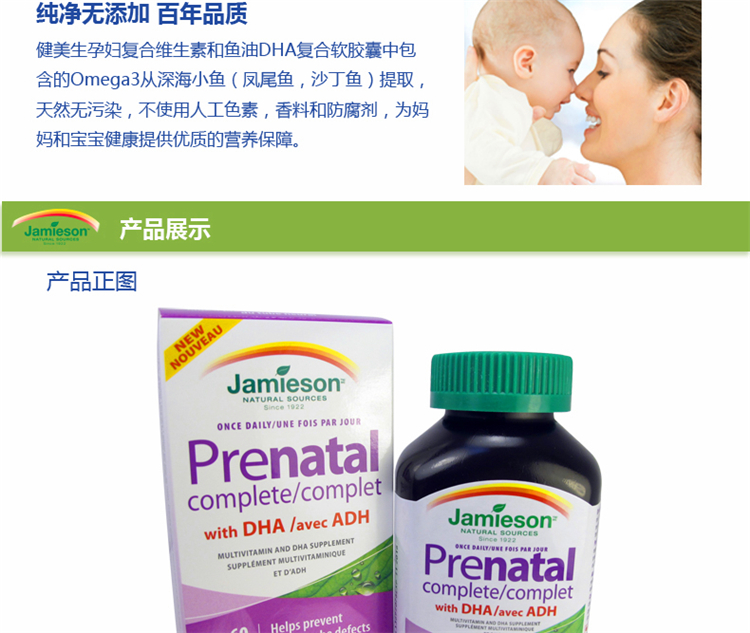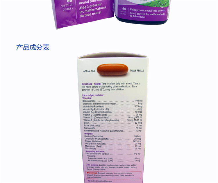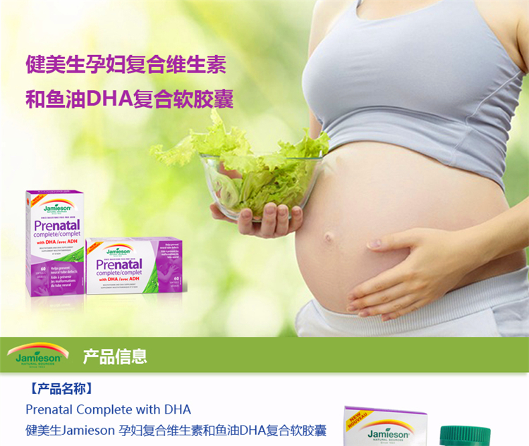 商品名称:【全球购】【加拿大直邮】健美生孕妇综合维生素+鱼油DHA复合软胶囊60粒 2个月量 一盒装
