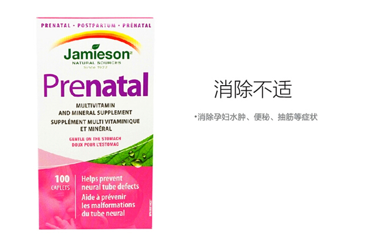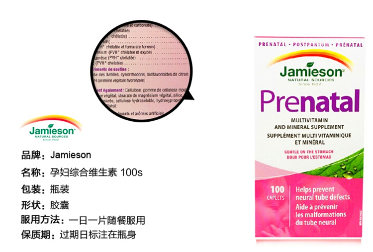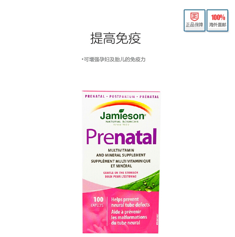 商品名称:【全球购】【加拿大直邮】Jamieson/健美生 孕妇综合维生素100粒 含叶酸100粒