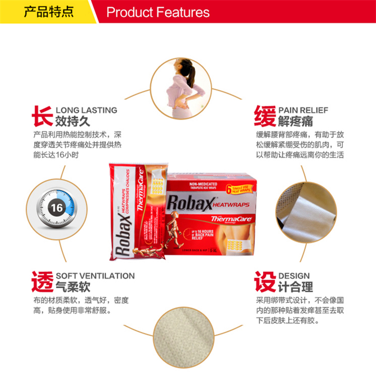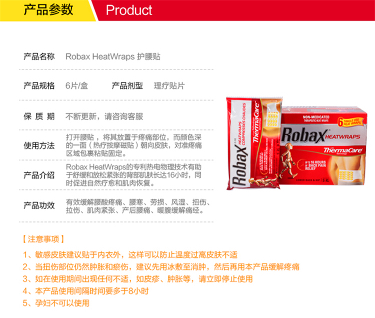 商品名称:【加拿大直邮包税】Robax护腰贴 暖腰贴 产妇月子必备 6片 1盒装 6片