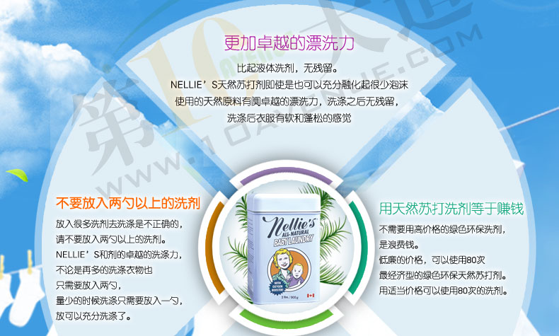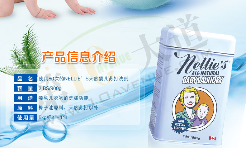 【加拿大直邮】Nellie's 内利天然苏打洗衣粉 1.5公斤