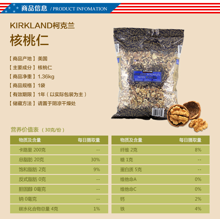 【加拿大直邮】可兰 Kirkland Signature 野生山核桃仁 碧根果 908g