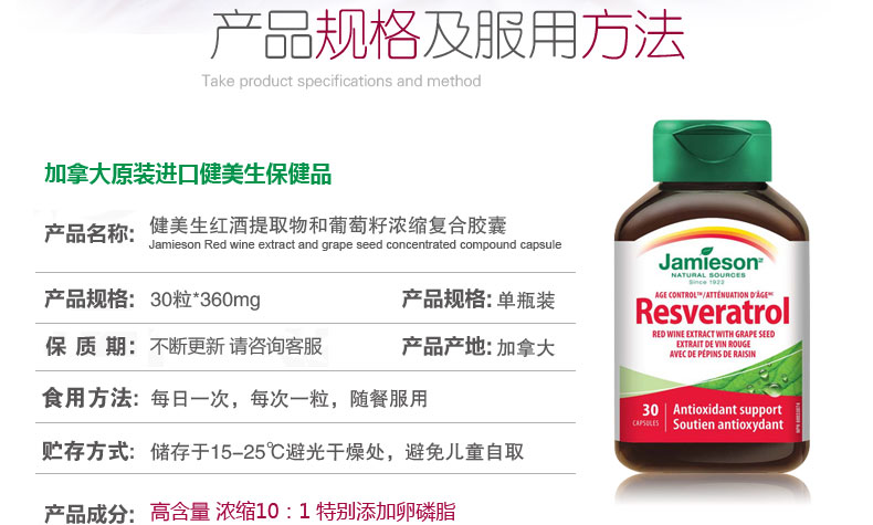 【加拿大直邮】健美生/Jamieson 葡萄籽浓缩片