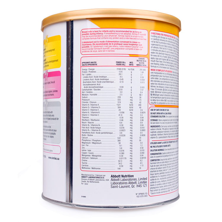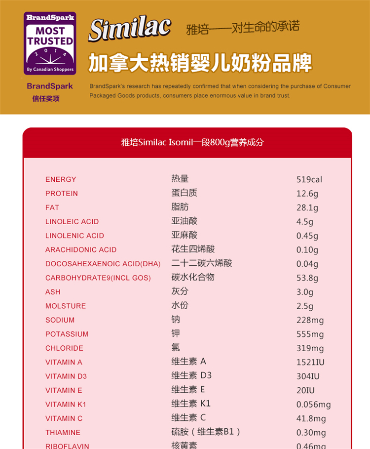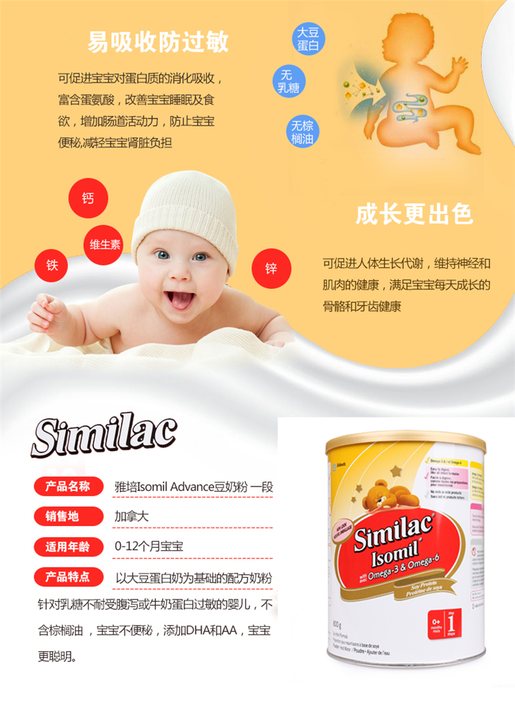 商品名称:【全球购】【加拿大直邮】雅培Similac Isomil 大豆蛋白奶粉 1段