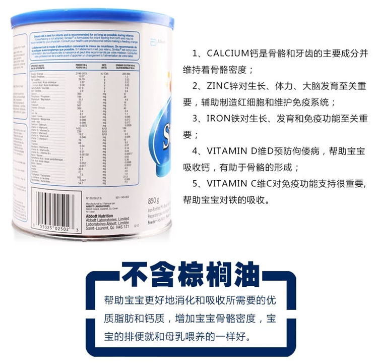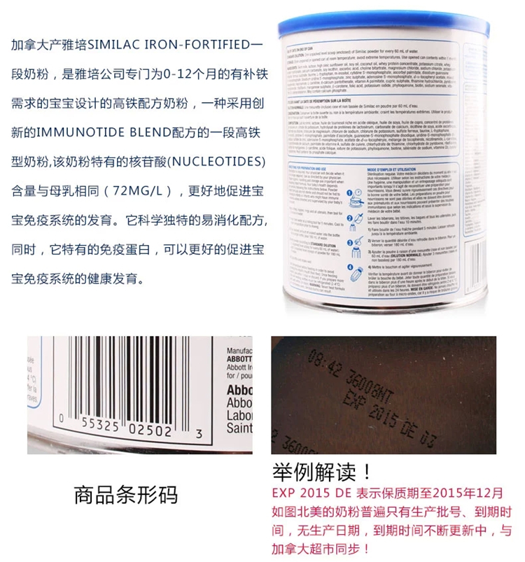商品名称:【全球购】【加拿大直邮】雅培1段Similac强化铁配方婴儿奶粉一段850g 一段2罐装