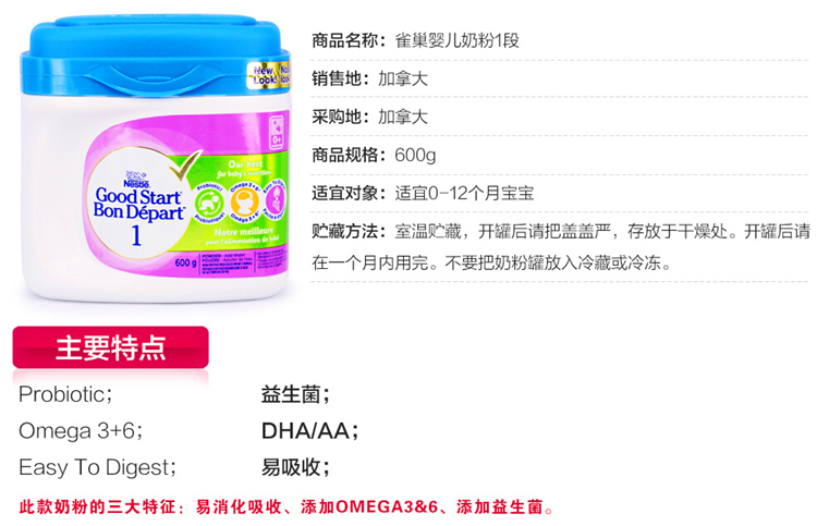 商品名称:【全球购】【加拿大直邮】雀巢nestle婴儿奶粉Good Start一段