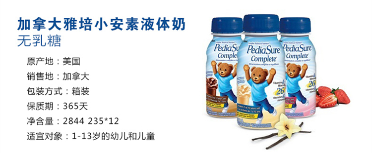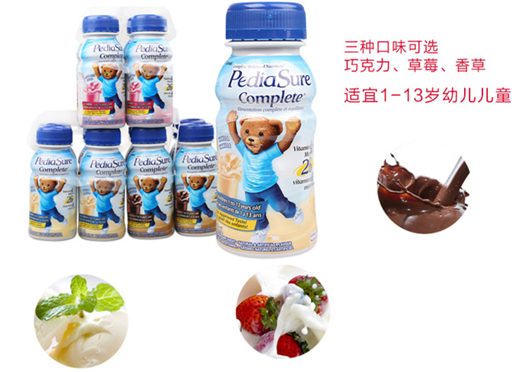 加拿大雅培小安素PediaSure即喝液体奶235ml 香草味/草莓味/巧克力味
